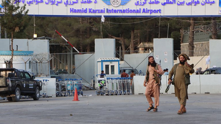 Vista de talibanes patrullando fuera del aeropuerto (Foto: EFE)