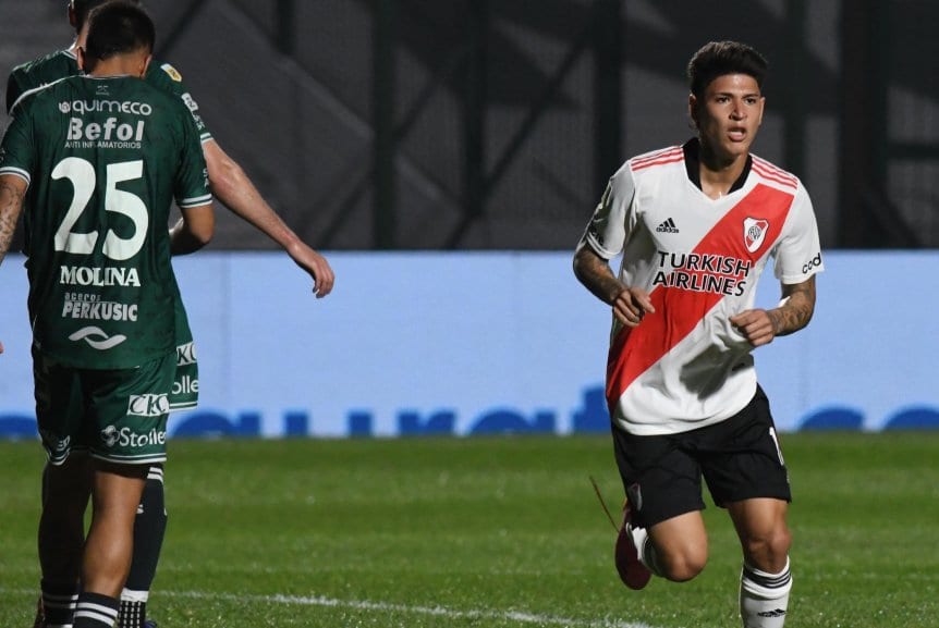 River, con varias ausencias entre convocados para Eliminatorias y lesionados, consiguió un triunfo agónico por 2-1 contra Sarmiento de Junín, como visitante, por la novena fecha de la Liga Profesional. De esta manera, el equipo de Marcelo Gallardo trepa en la tabla: quedó tercero. Enzo Pérez fue el autor del gol de la victoria.