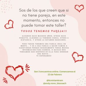 «No es un taller de parejas, sino que vamos a hablar y trabajar sobre todo aquello que influye en “tu relación de pareja”.