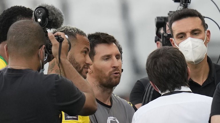 El partido entre Argentina y Brasil en el Arena Corinthians de Sao Paulo se suspendió por pedido de las autoridades sanitarias locales.
