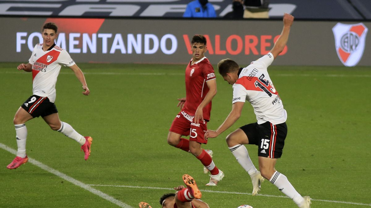 La visita casi no inquietó a Franco Armani más allá de algún centro cruzado, pero la principal preocupación del Muñeco en ese primer tiempo llegó cuando Paulo Díaz sufrió un golpe que le impidió continuar en el partido. El DT dispuso el ingreso de Jonatan Maidana y el chileno es duda para enfrentar a Boca el miércoles.